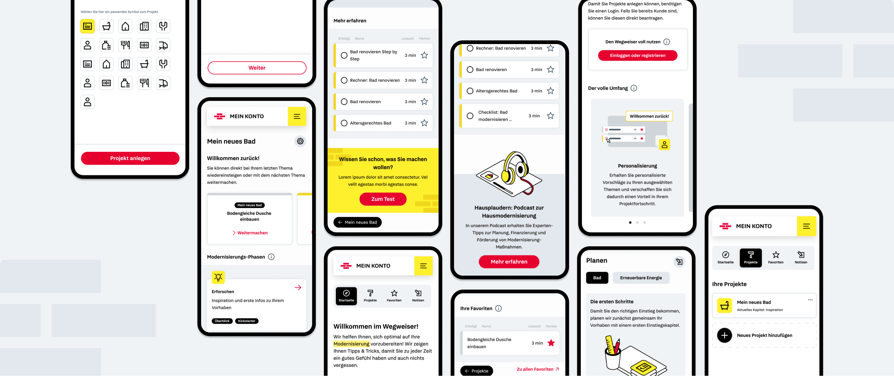 In Zeiten von Klimakrise und steigenden Energiekosten denken immer mehr Menschen an eine Modernisierung ihres Eigenheims. Doch ein solcher Prozess ist zeitaufwendig und beinhaltet oft viele verstreute Informationen, welche die Transparenz und Übersichtlichkeit erschweren. Die Bausparkasse Schwäbisch Hall möchte den Modernisierungsprozess auf ein neues Level heben, indem sie ihren Nutzer:innen ein Tool zur übersichtlichen Informationsstrukturierung an die Hand gibt und somit den individuellen Beratungsprozess vereinfacht.